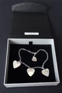 I wanted to share my favourite Mothers Day commission. Two sterling silver hearts, one with a matt finish and the child name with a tiny…