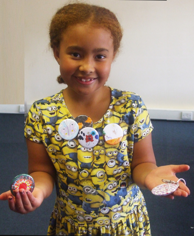 Today I ran a workshop for the Bountagu Community Hub where a packed room of kids designed and make an array of Badges, Keyrings, Magnets and Picture Stands. Every kind of design was created, funny faces to congratulations on new arrivals. So many were made as gifts. Who says kids these days are selfish!!
