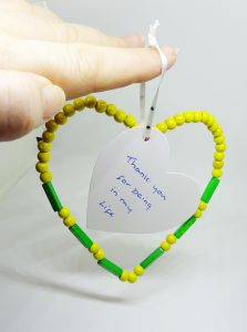 5) Now the heart is complete, you can add a message. I like a heart tag to carry the theme through. You can buy these or get a piece of paper/card and draw out hearts and cut them out. If you are not great at drawing hearts, use the templates on most writing and art programmes. Print and cut.